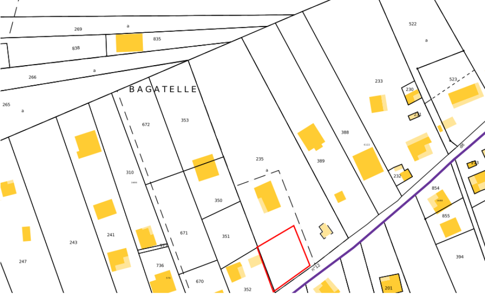 Origine : Lot no2 issu d’une division parcellaire récente de la parcelle cadastrée AN 235, situé au sud-ouest de celle-ci