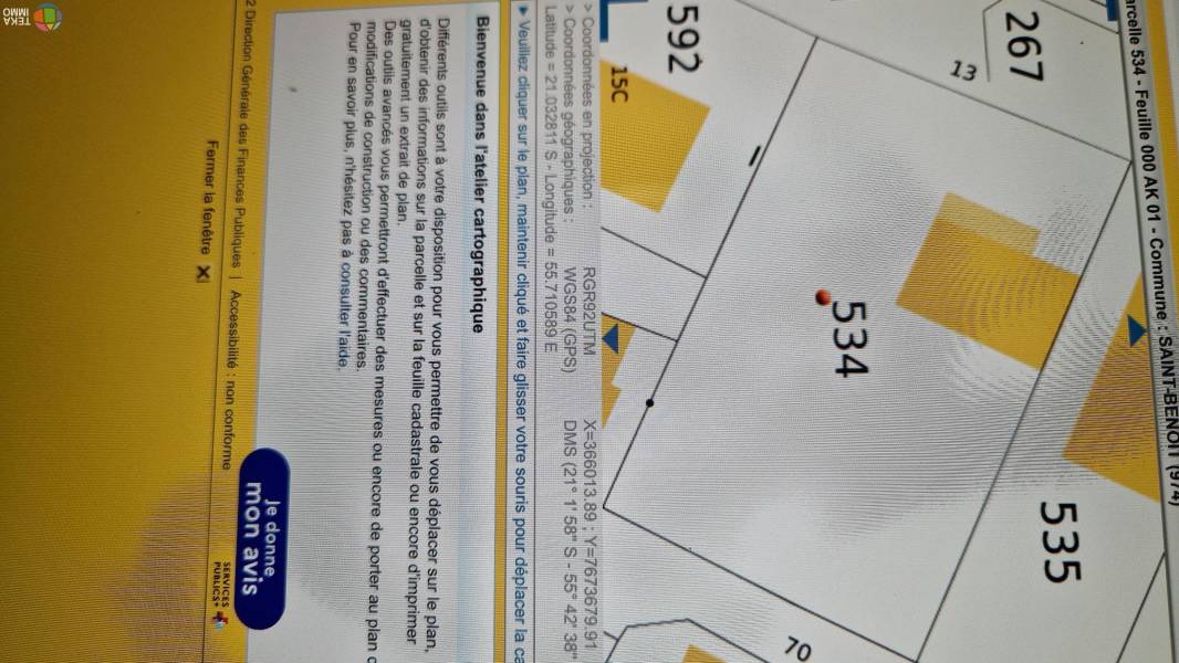 terrain constructible de 760M2, hauteur de construction 15 mtres, COS 80% , largeur: 21,50m, longueur:34m, situ au centre ville de st-benoit proche toute commodits 2 minutes de la mairie et de la 4 voies, Ce bien vous est propos au prix de 380000 euros, honoraires la charge DU VENDEUR . DPE non requis. Contactez votre Agent mandataire Teka Immo KADER EI au [coordonnées réservées] ou [coordonnées réservées] inscrit au tribunal de Saint Denis sous le numro R.S.A.C 812 383 531.Annonce rdige sous la responsabilit ditoriale de l'agent. Barme visible sur le site de Teka Immo. http://www.tekaimmo.fr/pdf/honoraires.pdf Les informations sur les risques auxquels ce bien est expos sont disponibles sur le site Gorisques : www.georisques.gouv.fr\n