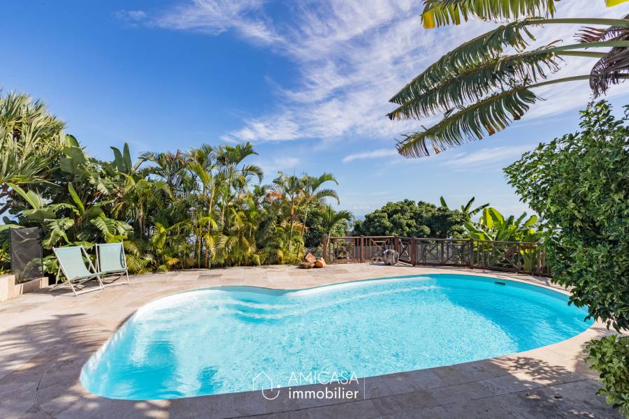 L'agence AMICASA IMMOBILIER vous propose à la vente cette magnifique villa T5/6 avec piscine implantée dans un magnifique jardin tropical avec magnifique vue mer.