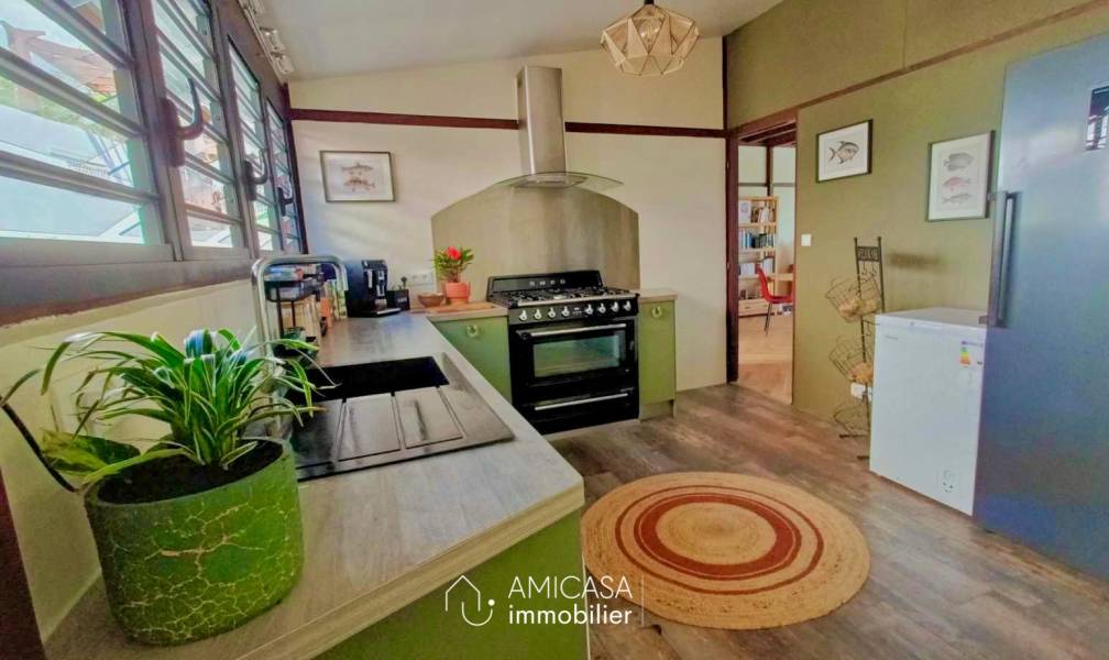 Le terrain de 1 090 m2 végétalisé et arboré de nombreux arbres fruitiers (manguiers, litchis, goyaviers, citronnier, bananiers, agrumes) permet d'etre niché dans un écrin de verdure sans vis à vis.