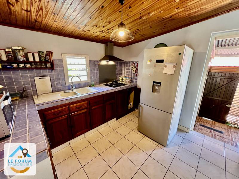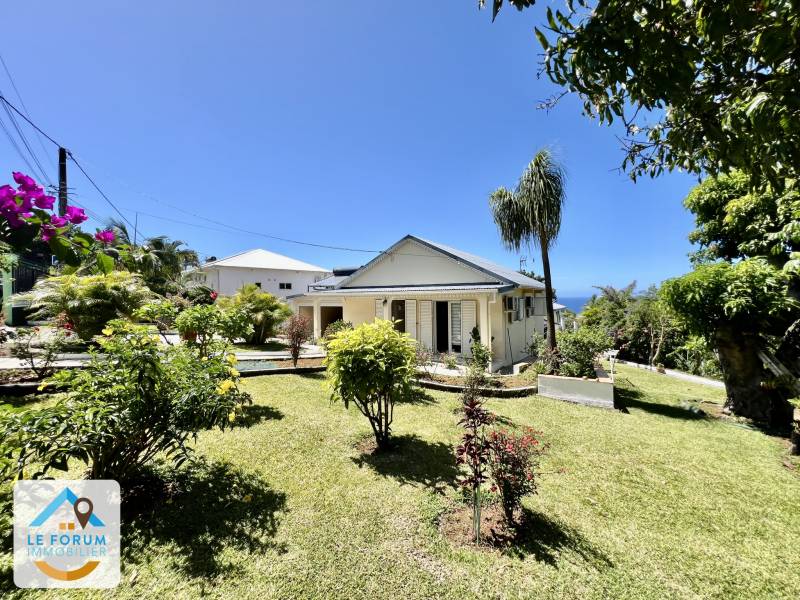 SAINT JOSEPH 97480: À DEUX MINUTES DU CENTRE VILLE: BELLE OPPORTUNITÉ pour cette magnifique villa F4 entièrement de plain pied, fonctionnelle et parfaitement entretenue. Comptant environ 68 m2 habitables, elle offre côté jour une lumineuse pièce à vivre, une cuisine aménagée et une agréable varangue ouverte sur le jardin d'environ 750 m2 propice à la détente. Le coin nuit bénéficie de 3 chambres confortables, d'une salle d'eau et d'un WC. Pour plus de fonctionnalité, vous disposez d'un garage de 18 m2 et d'une cuisine extérieure. Idéal pour qui souhaite en faire sa résidence principale ou de la location saisonnière. En fond d'impasse. Vue mer dégagée. Dans un environnement très prisé, proche écoles et lycée.