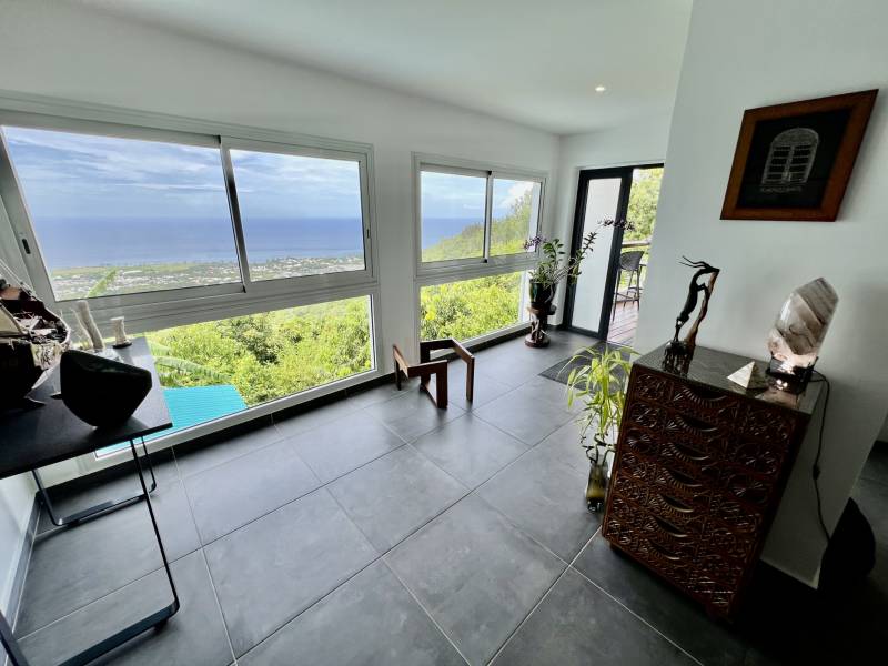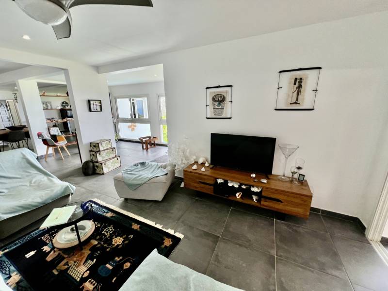 SAINT JOSEPH 97480 - BELLE OPPORTUNITÉ pour cette villa F4, moderne, lumineuse et fonctionnelle. Idéalement située à mi-hauteur sur environ 1420 m2 de terrain arboré et entretenu, la villa offre un cadre et un confort de vie fort agréable. Vous serez accueillis côté jour par une somptueuse pièce à vivre prolongée par un séjour convivial d'environ 37 m2 ouvert sur la cuisine aménagée équipée donnant un accès direct à la varangue depuis laquelle vous bénéficierez d'une vue imprenable sur le littoral. Le coin nuit comprend 3 chambres dont une suite parentale d'environ 33,20 m2 - 1 WC et une vaste salle d'eau avec douche à l'italienne. Idéal pour qui recherche de beaux volumes. Dans un secteur facile d'accès. Possibilité de vente meublée.