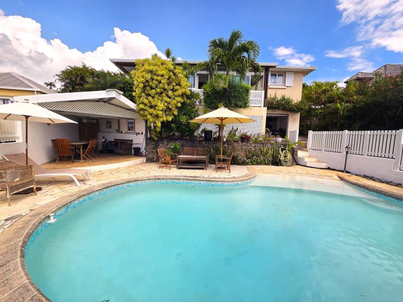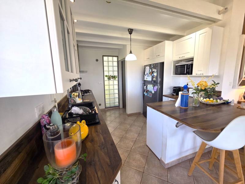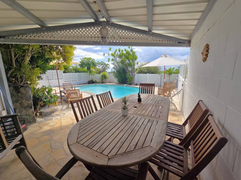 LNA vend à Sainte Marie, au coeur d'un lotissement agréable et proche du sentier littoral, une belle villa, au sein d'un ensemble de maisons individuelles, proposant un vaste séjour cathédrale, 3 chambres climatisées, un bel espace bureau pouvant se transformer en 4ème chambre, 2 salles de bains dont une avec douche à l'italienne et l'autre avec douche et baignoire, la chambre du bas de 20m2 étant agrémentée d'un dressing aménagé de près de 15m2.