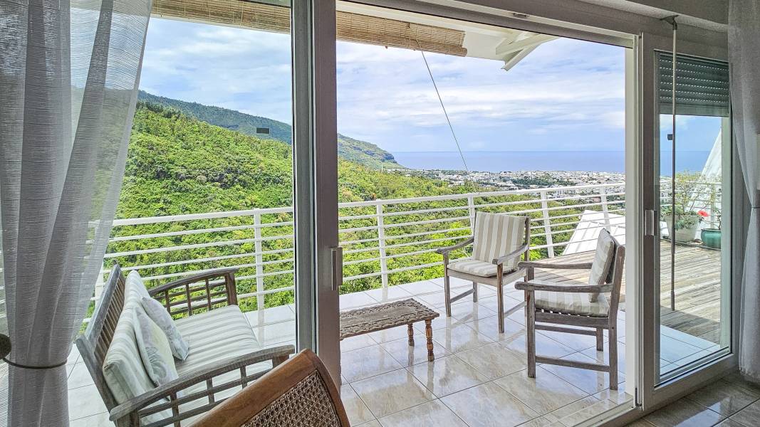 Magnifique vue nature et mer en surplomb de la ville. Logement traversant profitant bien des alizées.