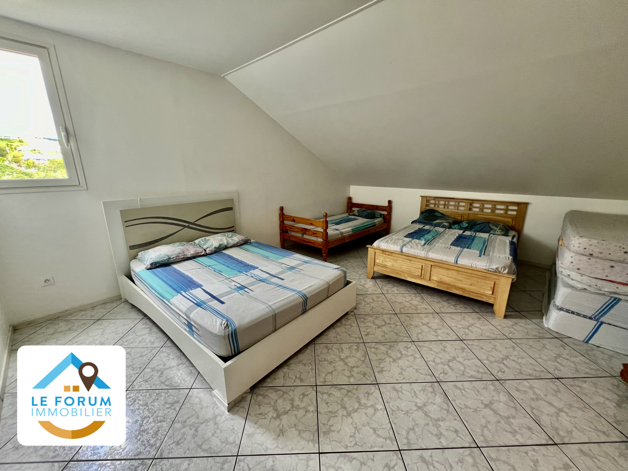 TAMPON 97430 - Le Forum Immobilier vous présente cette villa familiale édifiée sur 2 niveaux, d'une surface habitable d'environ 210 m2. Nichée sur un vaste terrain plat de 900 m2 environ, cette maison saura vous plaire de par ses beaux volumes mais aussi par son cadre de vie paisible. Dès l'entrée, vous êtes accueillis par le bel espace de vie de 35 m2 comprenant un séjour lumineux - convivial et une salle à manger, ainsi que de 2 cuisines de 14 m2 et 28 m2 fonctionnelles. Le coin nuit offre 4 grandes et confortables chambres allant de 14 à 23 m2, un bureau de 8 m2, une salle d'eau et une salle de bains de 7 et 8 m2 et de 2 WC. À l'extérieur, profitez de moment de détente sur la belle varangue de 29 m2 et du garage de 32 m2, pour le stationnement de vos véhicules ou pour la création d'un espace de rangement supplémentaire. Idéale location saisonnière. Située dans un cadre bucolique dans un quartier calme.
