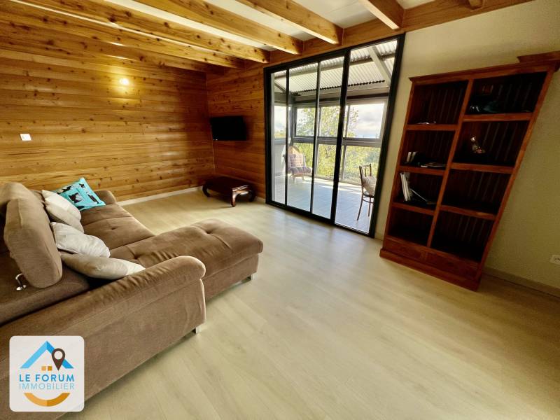 TAMPON 97430 - Superbe chalet en bois de type T3 à étage, d'une belle surface habitable de 152 m2, le tout implanté sur une parcelle de 300 m2 environ. Offrant un cadre de vie agréable et atypique, cette maison moderne offre de très beaux volumes. Le coin jour se constitue d'un chaleureux séjour de 30 m2, d'une pièce de vie de 51 m2 comprenant la salle à manger spacieuse et la cuisine entièrement aménagée et fonctionnelle. Côté nuit, vous bénéficiez de 2 grandes et confortables chambres de 14 et 19 m2, d'une salle d'eau bien agencée et d'un WC. Située au cœur d'un quartier résidentiel et calme. Commodités à proximité.