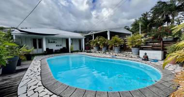SAINT JOSEPH 97480 - D'une surface habitable de 130 m2, venez visiter cette villa F5 édifiée sur 2 niveaux, implantée au cœur d'une parcelle plate de 400 m2. Cette maison familiale, offre côté jour un beau séjour de 35 m2 ouvert sur la belle varangue de 25 m2 et une cuisine aménagée et fonc...