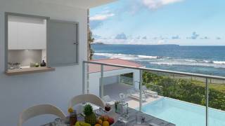 A vendre appartement T2 en VEFA de grand standing d'une superficie de 45m2 avec vue mer sur l'Ilet Pinel et Saint-Barth, terrasse (15m2), jardin et place privative dans une résidence privée et sécurisée à Cul de Sac à Saint-Martin. Toutes les pièces sont équipées de climatiseurs et de bras...
