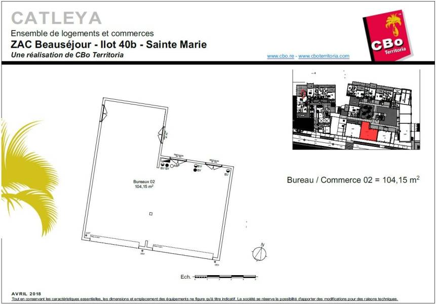 Situé face au siège de la CAF à Beauséjour, bureau d'une surface 104.15 m2 en RDC de l'immeuble Catleya.