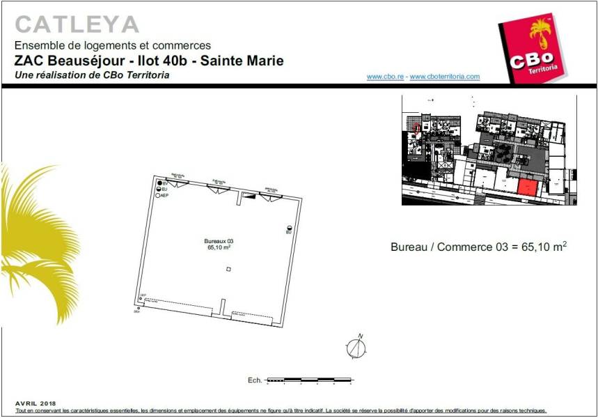Situé face au siège de la CAF à Beauséjour, bureau d'une surface 65.1 m2 en RDC de l'immeuble Catleya. Les locaux sont livrés bruts d'aménagement, fluides en attente. Grille bijoutier fournie - fermetures à prévoir.