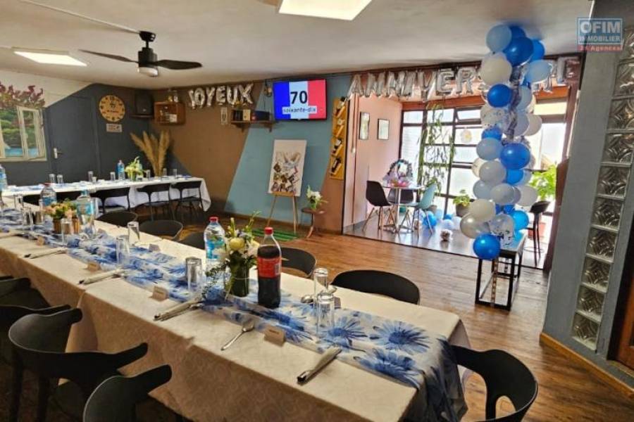 OFIM met en vente d'un fond de commerce restaurant clé en mains Situé dans un emplacement stratégique avec fort passage, bénéficiant d'une visibilité et d'une clientèle fidèle, proche de toutes les commodités, 90 couverts. 2 grandes pièces avec terrasses, une cuisine, un appartement, parking pour une voiture. PRIX 60 000 € Contact Lalaina 034 08 583 76 Honoraires à la charge du vendeur 24A70904, Numéro de mandat: 3217T Tél. commercial: LALAINA 0340858376