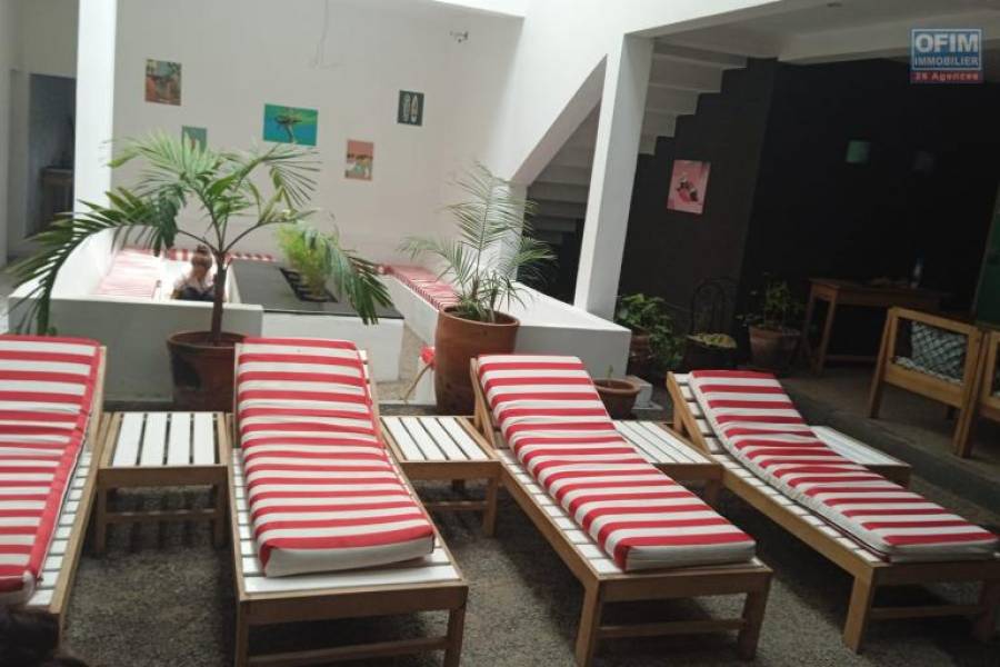 L'OFIM met en vente un bâtiment d'une superficie totale d'environ 900m2 habitable, comprenant 12 chambres doubles, une salle de restaurant, une piscine intérieure chauffée, un dépôt, un garage fermé, une terrasse et une cuisine. La propriété, située sur un terrain de 300m2, est vendue entièrement équipée et meublée, offrant ainsi un avantage considérable pour le nouvel acquéreur. Avec une capacité d'environ 50 couverts, l'établissement est prêt à accueillir la clientèle dès le premier jour. Le site est viabilisé en eau et électricité triphasé, équipé d'un groupe électrogène de 7KVA et d'un réservoir d'eau de 4 000 litres. L'hôtel est vendu avec les murs et le fond de commerce, prêt à être exploité. Quelques travaux de finition sont à prévoir. Le prix de vente de cette opportunité unique est de 1 400 000 000 MGA. Pour organiser une visite, veuillez contacter Francia au 034 02 218 69. Honoraires à la charge du vendeur 28A68372, Numéro de mandat: 386T3 Tél. commercial: 03402 218 69