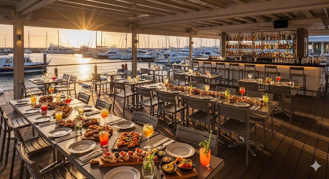 Cet établissement reconnu profite d'un emplacement rare, face à la marina et au coucher de soleil. Grande terrasse en bois d'environ 170 m², salle intérieure, bar central et cuisine pro entièrement opérationnelle : un outil de travail prêt à exploiter. L'activité tourne autour des petits-déjeuners, tapas, cuisine du monde et soirées DJ. Le chiffre d'affaires dépasse 1,6 M euros et reste stable, porté par un flux constant de touristes et d'habitués. AOT de 12 ans en cours jusqu'en 2033 renouvelable. Le fonds inclut le matériel, l'aménagement, l'enseigne et la clientèle. Une opportunité solide dans un secteur très recherché. Honoraires uniquement à la charge de l'acquéreur Prix de vente TTC HAI : 1 012 080 euros Pour en parler ou organiser une visite : [coordonnées réservées]. (5.43 % honoraires TTC à la charge de l'acquéreur.)