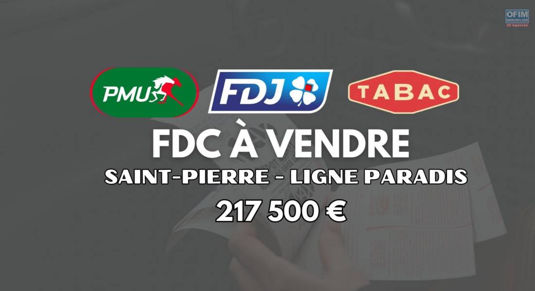 À vendre – 100 % des parts sociales d’un fonds de commerce PMU, FDJ, Tabac, Point chaud – Saint-Pierre (Ligne Paradis) – 217 500 €