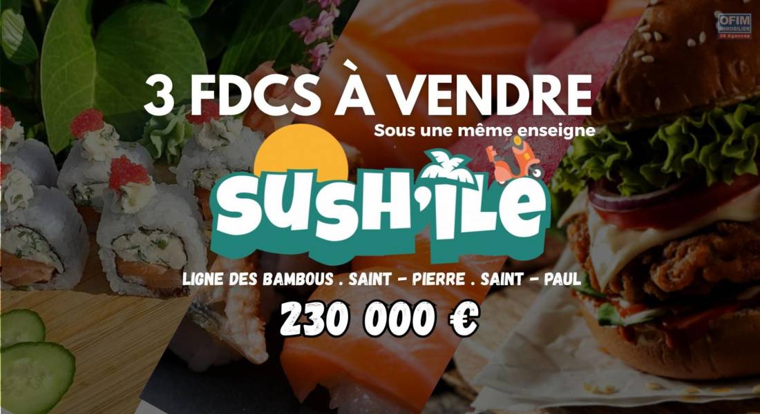 À vendre : Cession de 3 Fonds de commerce de restauration rapide sous une même enseigne « Sush'Île »