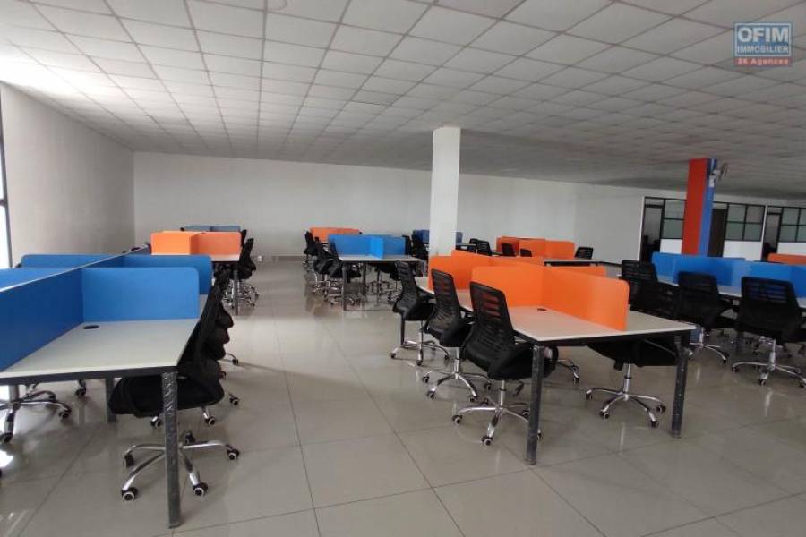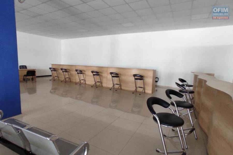 L’agence OFIM vous propose à la location un vaste local commercial ou professionnel idéalement situé en bordure de la route principale à Anosizato, bénéficiant d’une excellente visibilité et d’un accès facile. Ce bâtiment est aménagé sur deux niveaux de 750 m² chacun, offrant un espace ouvert (open space) entièrement modulable selon vos besoins. Chaque étage dispose de 6 cabines de toilettes, ce qui permet une utilisation confortable pour des effectifs importants. La façade est équipée de baies vitrées, apportant une belle luminosité naturelle et une visibilité optimale pour les activités commerciales. Ce bien conviendrait parfaitement pour un showroom, un centre d'appels (call center) ou tout autre usage nécessitant de grands volumes ouverts. - Options supplémentaires disponibles : cloisons et mobilier (à convenir). Le bâtiment est également pourvu d’un vaste parking privé pouvant accueillir jusqu’à 20 véhicules, un atout majeur en zone urbaine. Loyer : 5 € HT/m², ou l’équivalent en Ariary. Contact pour visite : Francia – 034 02 218 69 28A71433, Numéro de mandat: 562T3 Tél. commercial: 0340221869