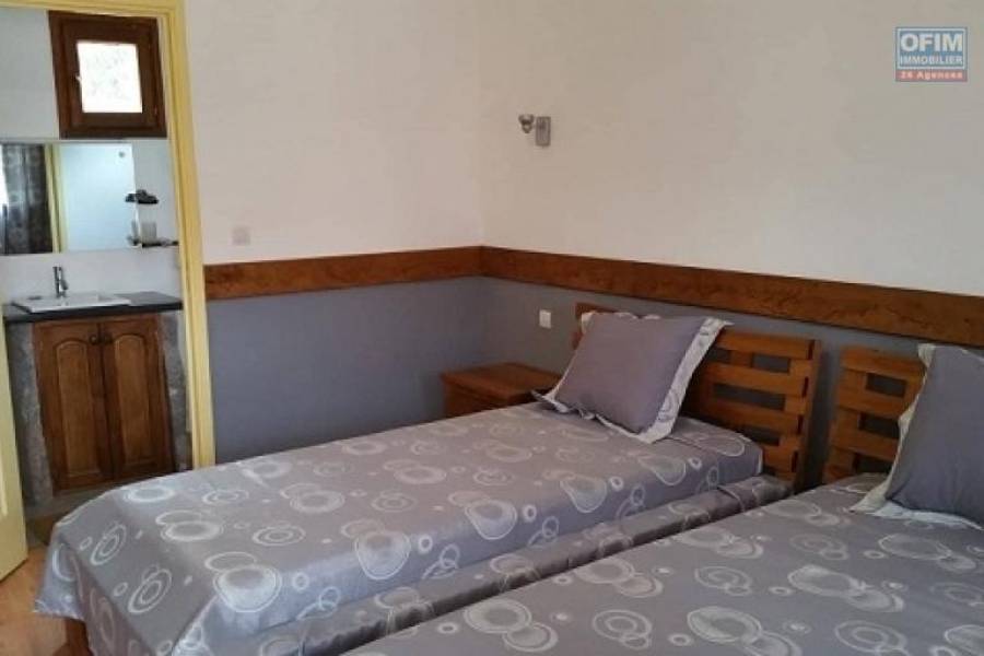 OFIM vous offre en location gérance une résidence hôtelière avec une centre de loisir et salle de réception dans un quartier très calme, cadre verdoyant et fleuri à 500 m de la RN 4 à Andakana Ambohidratrimo et seulement à 15 minutes de l'aéroport international d'ivato. Cette résidence est composée une vingtaine de chambres dont 5 bungalows, une grande salle de réception peut accueillir 400 personnes, une salle de réunion, salle de sport bien équipée, une grande cuisine entièrement équipée des matériels professionnels, une piscine, un terrain de tennis, basket, volet et un boule-drome. NON DISPONIBLE LOYER 4 500 EUROS ( payable en ariary selon cours du jour) CONTACT Mr Jacky 034 02 443 04 26A58094, Numéro de mandat: 774T2 Tél. commercial: 0340244304
