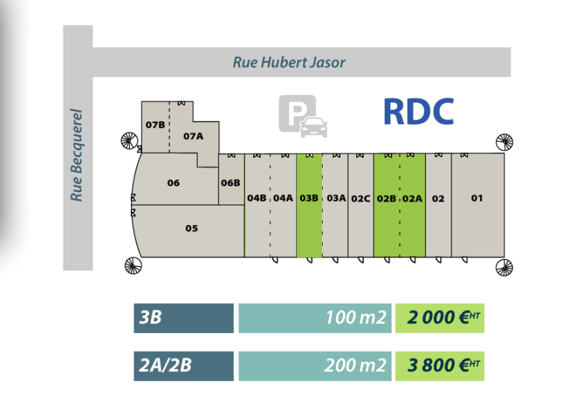 Egalement au RDC : Un autre lot de 200m2 disponible (voir plan)