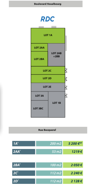 Également au rez-de-chaussée : 4 autres lots sont disponibles, d’une superficie de 200 m2, 53 m2 et 112 m2.