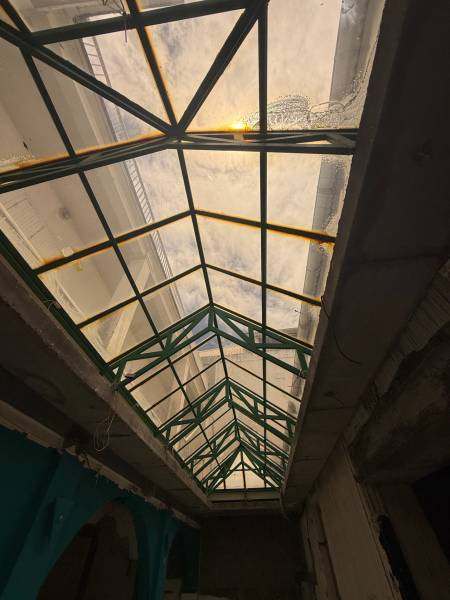 un espace lumineux surplombé d’une verrière, apportant charme et lumière naturelle.