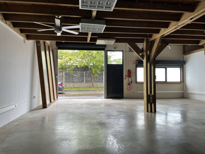 Saint Leu - Pointe Des Châteaux. Local sécurisé de 100 m2 de forme carré avec une hauteur sous plafond de 3.8 à 7.2 m, comprenant: 1 porte d'entrée, 1 porte sectionnelle pour dépotage camion, et un espace sanitaire.
