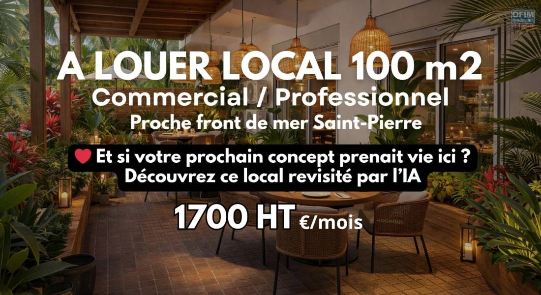 A louer local commercial / professionnel de 100m2 avec Terrasse proche front de mer Saint-Pierre à 1700€ HT
