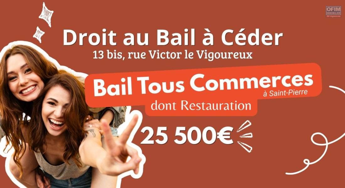 A Céder Droit au Bail Tous Commerce dont RESTAURATION, 13 rue Victor Le Vigoureux à Saint-Pierre | 25500€