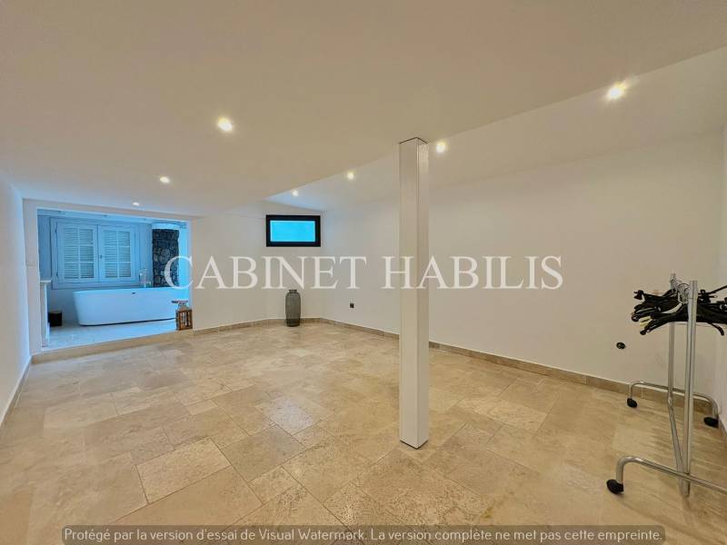Elle se compose au rez-de-chaussée d'une cuisine aménagée et équipée (hotte, plaque électrique, micro-ondes, four, lave-vaisselle) ouverte sur un séjour lumineux donnant sur une terrasse extérieure et une piscine. Ainsi que quatre suites parentales, un dressing, une buanderie, une salle de bains séparée et un WC.