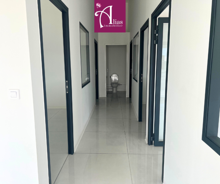 Situé au 1er étage d’un immeuble sans ascenseur, ce local de 100 m2 est entièrement aménagé et prêt à l’emploi. Il se compose de plusieurs bureaux lumineux, chacun bénéficiant de vitrages laissant entrer la lumière naturelle, ainsi qu’un bloc sanitaire. L’ensemble est en excellent état, avec peinture et faux plafond déjà réalisés, ne nécessitant aucun travaux.