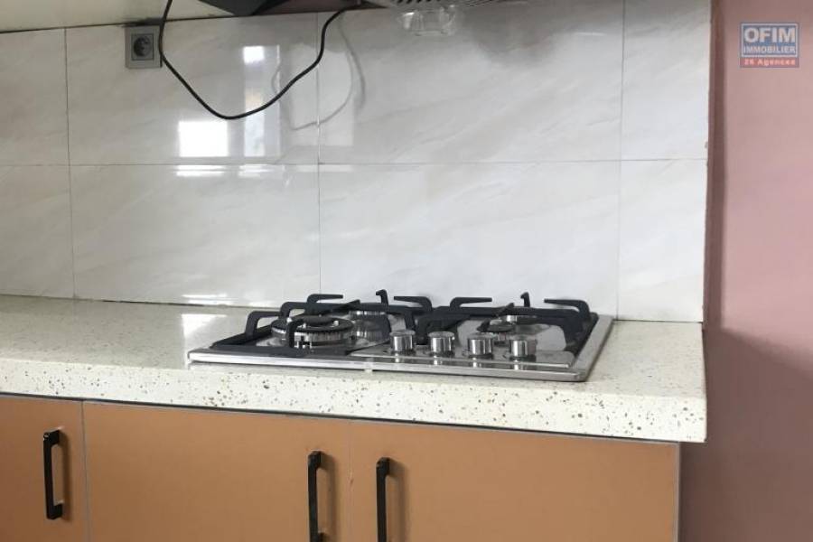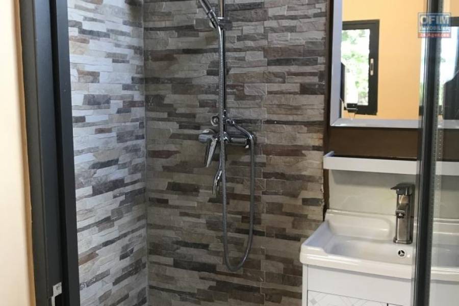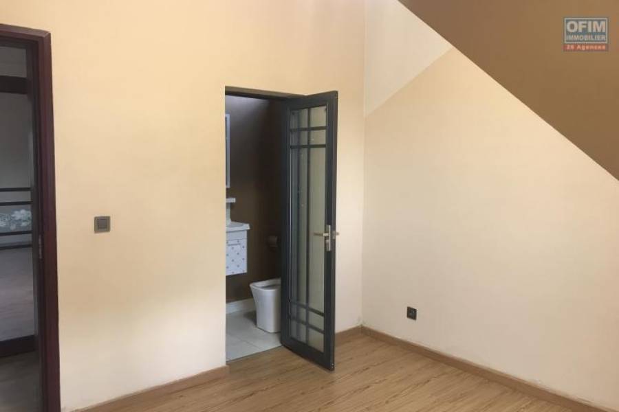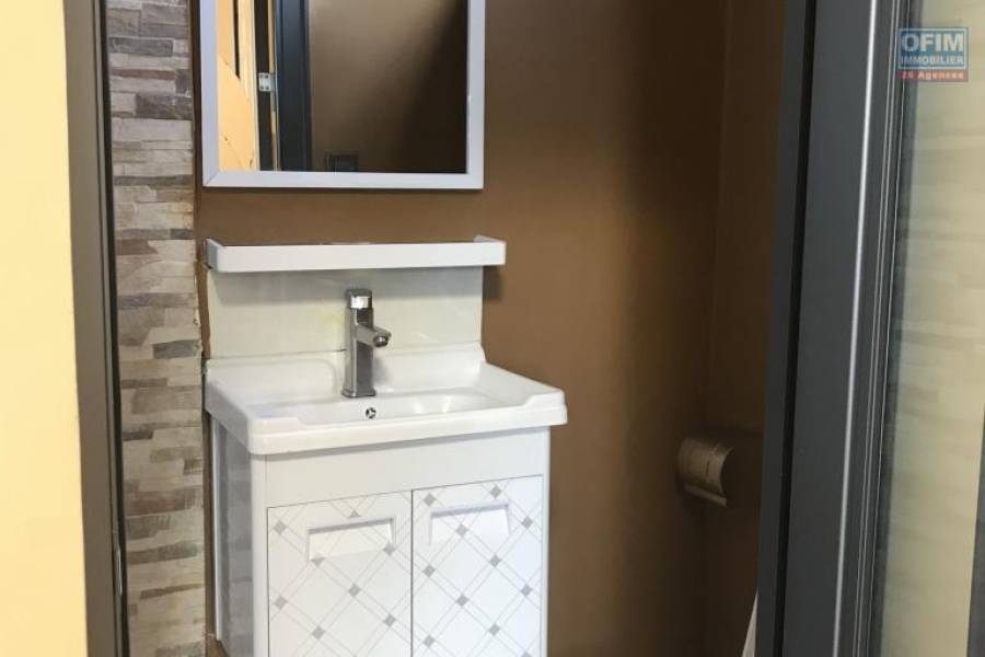 OFIM met en location un appartement de type T5 dans un immeuble fraîchement construit sis à Talatamaty bord de route et à proximité de toutes les commodités comme centre commercial, banques, marchés, écoles et transports en commun. À 10 minutes de l’aéroport Ivato. L’appartement comprenant 4 chambres dont une avec douche et toilettes attenante, un grand living carrelé avec terrasse, une autre douche et toilettes, et une cuisine fermée équipée et placardée. Chaque appartement possède un visiophone pour contrôler l’entrée principale. Loyer 1 800 000 ar Contact Mr Jacky 034 02 443 04 26A64934, Numéro de mandat: 1046T2 Tél. commercial: 0340244304
