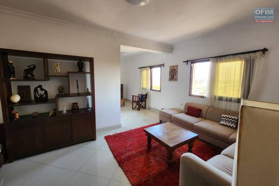 À louer un appartement de type T6 en duplex meublé et équipé au 3eme étage d'un immeuble de R+4 bien situé et sécurisé, bord de route principale à 3 minutes de l'aéroport et proximité de toutes les commodités sise à Ivato.