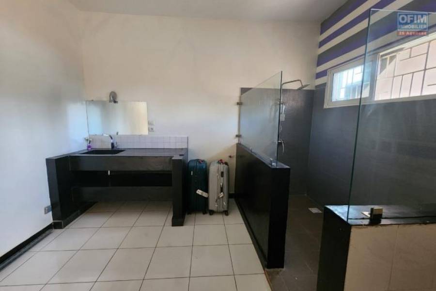 OFIM met en location un appartement meublé de type T4 dans une résidence sécurisée à Mandrosoa Ivato, équipé kit anti-délestage et réserve d’eau avec surpresseur. CARACTÉRISTIQUES : • 3 chambres dont une avec salle d’eau attenante • Une cuisine fermée, bien équipée : plaque à gaz, hotte aspirante, placards de rangements • Un living spacieux et bien lumineux • salle d’eau commune • 2 toilettes • Un petit jardin privatif • Parking pour plusieurs voitures AVANTAGES : • Équipé énergie solaire de 15 KVA • Eau indépendante de la JIRAMA, avec cuve et surpresseur. • Proximité de toutes les commodités : aéroport, marché, écoles et transports en commun. LOYER : 1 500 000 ar (charges comprises) Contact : Mr Jacky Mobile et WatsApp +261 34 02 443 04 26A71238, Numéro de mandat: 1348T2 Tél. commercial: 0340244304