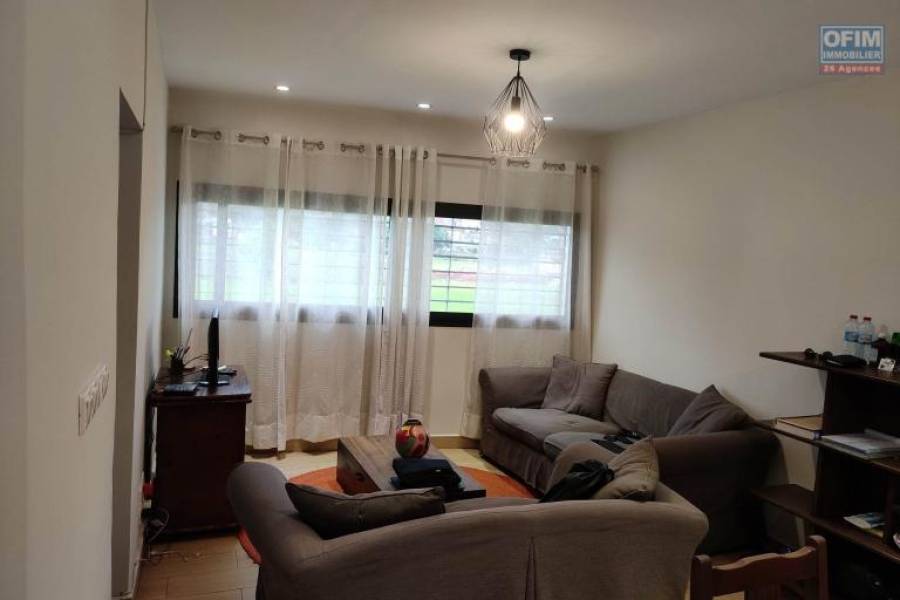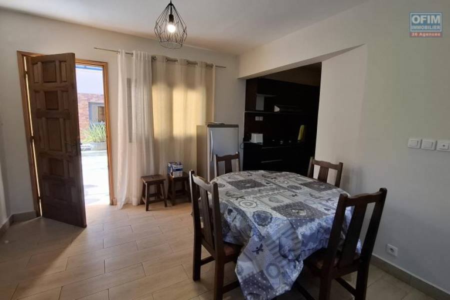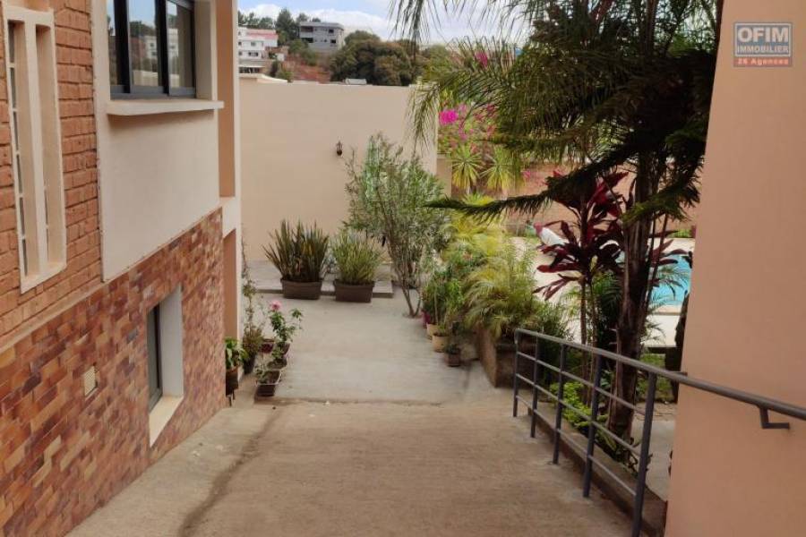 Meublé : Cet appartement est à 1 min de la route principale et dans un quartier résidentiel. Il est composé de: -1 living -deux chambres avec douche attenante chacune -un coin cuisine -une terrasse -piscine à l'extérieur Parking pour une voiture Loyer: 2 700 000ar tout compris: eau, wifi, agent de sécurité 24/24, accès au salle de sport et piscine. Contact 034 98 671 11 28A66311, Numéro de mandat: 201T3 Tél. commercial: 0349867111