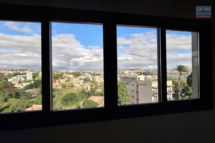 Le bâtiment est doté d'un ascenseur, d'une groupe électrogène et d'un réservoir d'eau. Il est en bord de route d'Ivandry, composé de: -un living avec un coin cuisine équipée et deux verrières -trois chambres dont l'une est une suite parentale -deux salle d'eau -un parking au sous sol Loyer: 1000€ payable au cours du jour. Possible ameublement mais le prix à ajuster. Contact: 034 98 671 11 28A70871, Numéro de mandat: 209T3 Tél. commercial: 03498671111