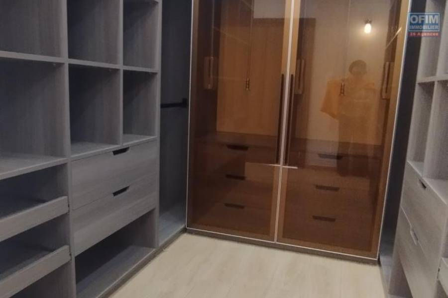 Nous vous proposons à la location cet bel appartement T4, neuf au premier étage d'un immeuble disposé comme suit: - lumineux living -cuisine ouverte équipée de four, plaque de cuisson, micro onde et hotte aspirante et un cellier - 3 chambres placardées dont une en suite avec dressing et salle de bain attenante - une chambre de bonne avec sanitaires privées - un local buanderie et lavoir -un box pour rangement -grande place de parking abrité, et parking visiteur L'immeuble est sécurisé H24/7, les locataires peuvent profiter de l'espace commun gazonné et d'une terrasse couverte pour un barbecue party Loyer 3 000 000 Ariary Contact Felana 034 16 547 55 24A71060, Numéro de mandat: 3229T Tél. commercial: 0341654755