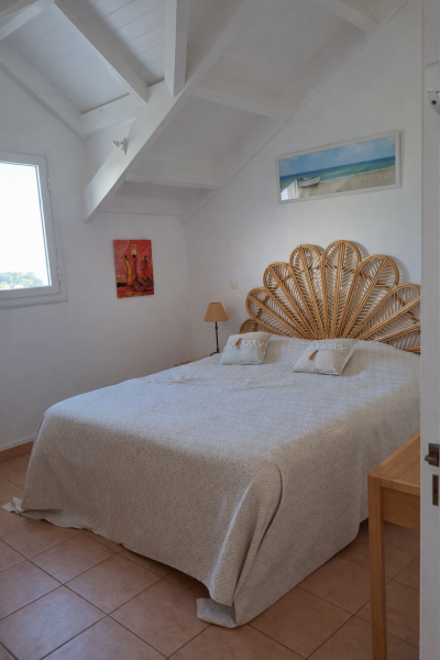 Le logement se compose au premier niveau d’une cuisine ouverte entièrement équipée (lave-vaisselle, lave-linge, four, plaque de cuisson, hotte, micro-ondes) donnant sur un séjour spacieux et lumineux, avec accès à une grande terrasse orientée vers la mer.