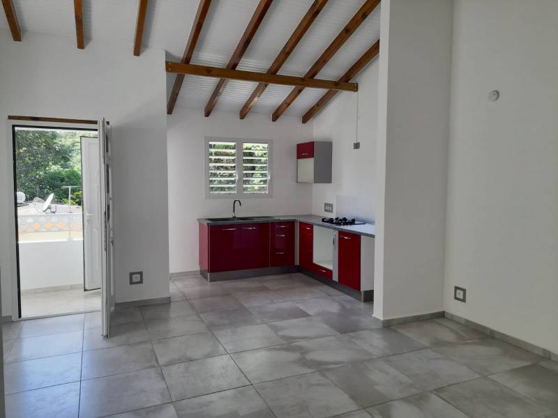 Au Gosier secteur de Leroux Appartement dans petit immeuble sécurisé au 1ier étage neuf comprenant : 1 cuisine ouverte ,1 séjour , 2 chambres (dont 1 climatisée) , 1 salle de douche avec WC + ,1 terrasse , 1 parking véhicule. Loyer = 820 € + 80 € (eau+ Electricité ) = 900 € CC/Mensuel dépôt de garantie = 820 € Honoraires de location= 583 €