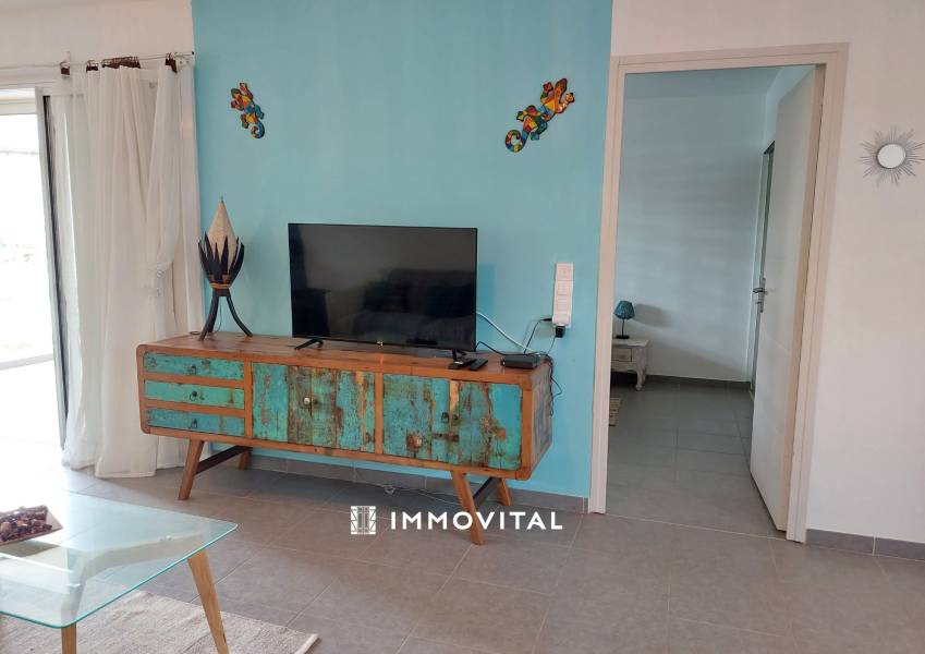 IMMOVITAL LE MOULE vous propose à la location ce magnifique T2 moderne meublé et climatisé, proche des commodités à pied et de la plage de La Baie.