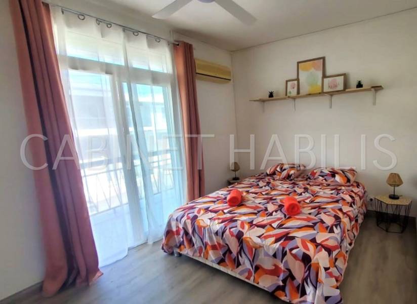 Il se compose d'un grand séjour / salle à manger, d'une cuisine aménagée et équipée (hotte, plaques, four...) de deux chambres climatisées, d'une salle d'eau avec WC séparé.