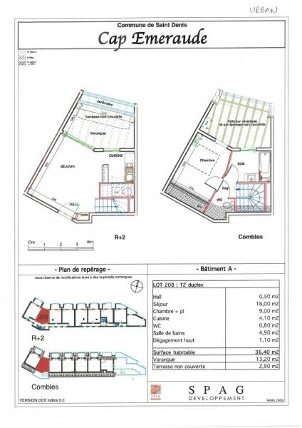 Appartement T2 Duplex situé à Sainte-Clotilde dans le secteur de Bois de Nèfles. D'une surface habitable de 36.40 m2, ce bien est composé de : Une entrée, un séjour, une cuisine, une chambre avec placard, une salle de bains, un WC, une varangue de 6.30 m2 et une place de parking extérieure
