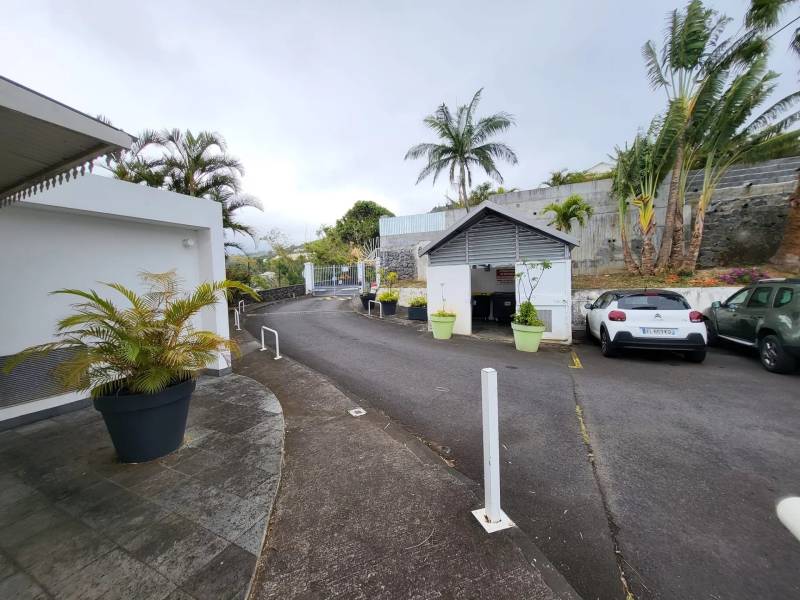 Il comprend : une pièce principale climatisée et avec placards donnant sur une varangue couverte, une cuisine équipée (placards, plaques, frigo GM), une salle d'eau avec WC et un jardin privatif de 11m² avec vue mer.