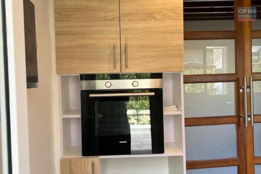 OFIM met en location une belle villa à étage de type F5 dans un lotissement à Tanjombato. La villa se trouve à proximité de toutes les commodités et comprenant: Au rez de chaussée : un living, une chambre, une cuisine placardée et équipée de plaque à gaz encastré, hotte aspirante et four , une salle d'eau et toilette. A l'étage : trois chambres placardées avec balcon , une salle d'eau et une toilette A l'extérieur : une cuisine extérieure , une dépendance gardien équipée douche et toilettes, un abri pour 2 voitures et un petit jardin avec pelouse. Loyer 4 200 000 AR Contact Mr Jacky Mobil et whatsApp +261 34 02 443 04 26A58267, Numéro de mandat: 063GT2 Tél. commercial: 0340244304
