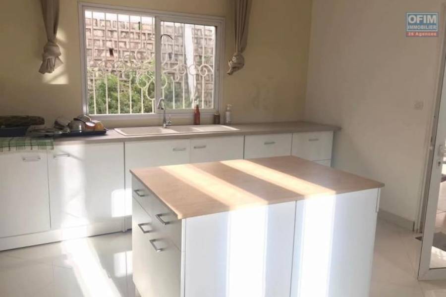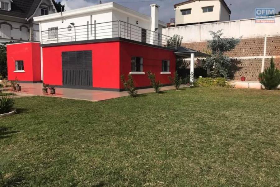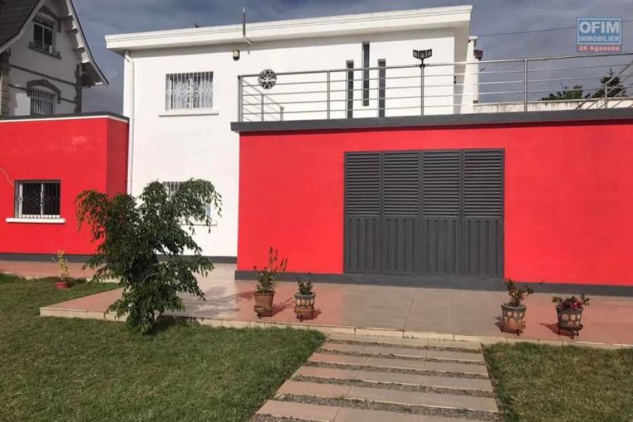 Pour ceux qui aiment le calme et l'air pure, une opportunité à saisir ! OFIM met en location une villa à étage moderne récemment construite de type F5 dans un quartier calme et résidentiel avec une belle vue dégagée sur le golfe du rova, bâti sur un grand terrain de 4000 m2 avec un jardin bien aménagé, arbres fruitiers et terrain tennis sis à Anosiala Ambohidratrimo. Cette villa comprenant 4 chambres dont 2 avec salle de bain attenante, un jacuzzi et une douche à l’italienne, un grand living carrelé et bien lumineux, une cuisine équipée ouverte avec îlot central. Et à l’extérieur une cuisine d’été sur la terrasse, garage fermé et dépendance gardien. Loyer 4 000 000 ar négociable Contact Mr Jacky Mobil et WhatsApp +261 34 02 443 04 26A70648, Numéro de mandat: 107GT2 Tél. commercial: 0340244304