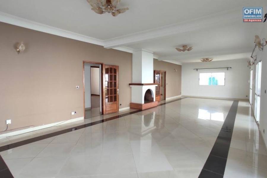 Située dans un environnement paisible, proche des écoles et de toutes les commodités, cette villa à étage offre confort et fonctionnalité. Elle est équipée d’une citerne d’eau avec surpresseur pour une autonomie optimale. Rez-de-chaussée : - Grand séjour lumineux avec cheminée - Cuisine fonctionnelle avec cellier - Une chambre avec salle d’eau attenante - Buanderie pratique À l’étage : - Quatre chambres spacieuses, dont une suite parentale climatisée avec dressing et salle d’eau privée - Les trois autres chambres disposent toutes de placards intégrés Extérieurs : - Joli jardin - Cour aménagée - Abri pour deux voitures - Dépendance pour gardien - Cuisine extérieure Loyer : 1 600 € ou équivalent en Ariary Contact pour visite Francia 034 0218 69 28A71690, Numéro de mandat: 1955T Tél. commercial: 0340221869