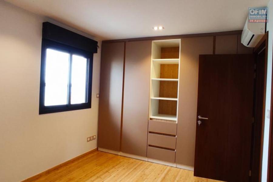 OFIM vous propose à la location une villa à étage F5 avec une très belle finition dans une résidence bien sécurisée en plein coeur d'Ankorondrano, quartier calme et résidentiel, toutes les commodités sont à proximités. cette villa ultra moderne dispose au rez- de- chaussée : un lumineux séjour, une cuisine fermée , aménagée et équipée et une chambre avec salle d'eau. A l'étage , une grande pièce à vivre avec baie vitrée qui donne sur belle et grande terrasse avec vue sur le lac masay, une petite pièce pour bureau, 3 chambres avec salle d'eau privative chacune, la chambre parentale est dotée d'un grand placard intégré. Toutes les pièces principales sont équipées d'une climatisation réversible. la villa dispose d'un abri pour 2 voitures avec portail électrique télécommandé. Loyer : 1750€ Contact pour visite LALAINA 034 08 583 76 24A65528, Numéro de mandat: 2777T Tél. commercial: LALAINA 0340858376