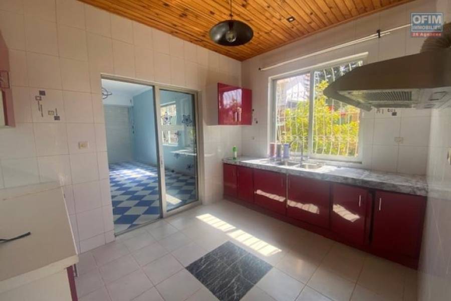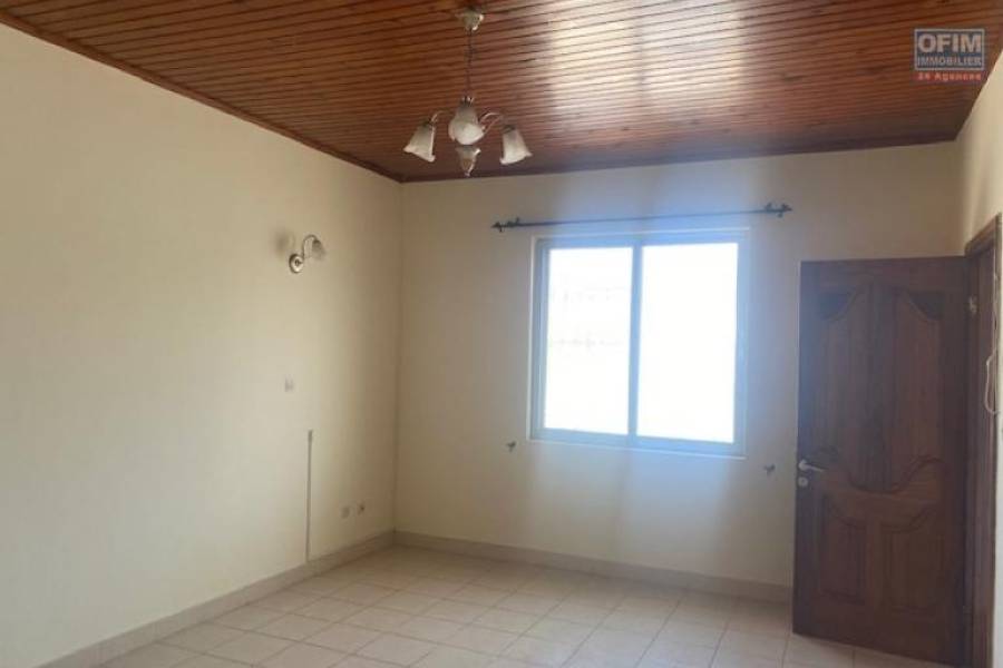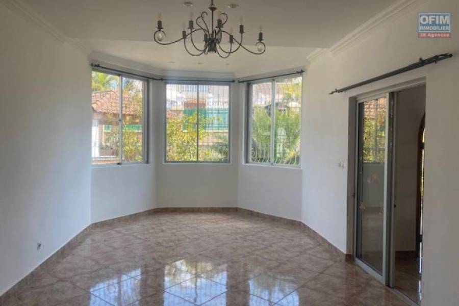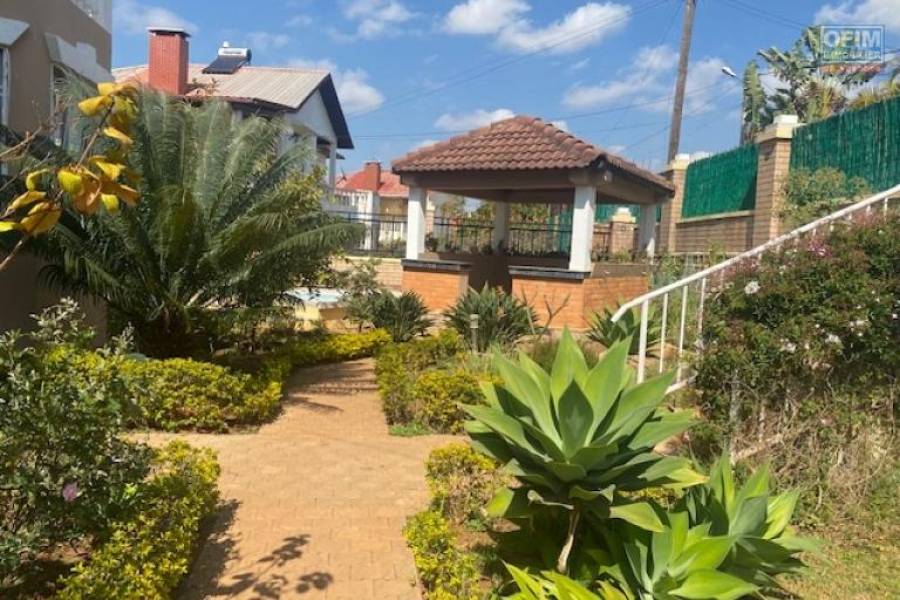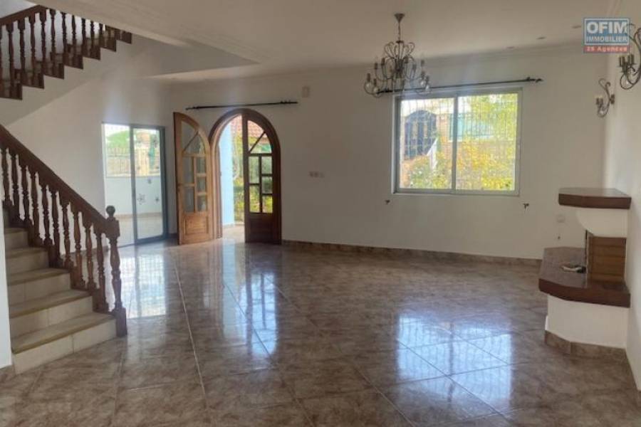 OFIm propose en location une villa F5 à 5mn à pied du Lycée Français à Ambatobe Elle se situe dans un quartier calme, sécurisé, tout proche des commodités Elle est composée d'un living avec cheminée, une cuisine, 2 grandes pièces, une salle d'eau A l'étage une chambre parentale avec salle de bain attenante, 4 chambres, une salle d'eau commune, 2 grandes terrasses, La maison possède un garage, un chalet, parking pour 3 voitures, dépendance gardien jardin. LOYER 2 500 € Contact pour visite Lalaina 034 08 583 76 24A67811, Numéro de mandat: 2948T Tél. commercial: LALAINA 0340858376