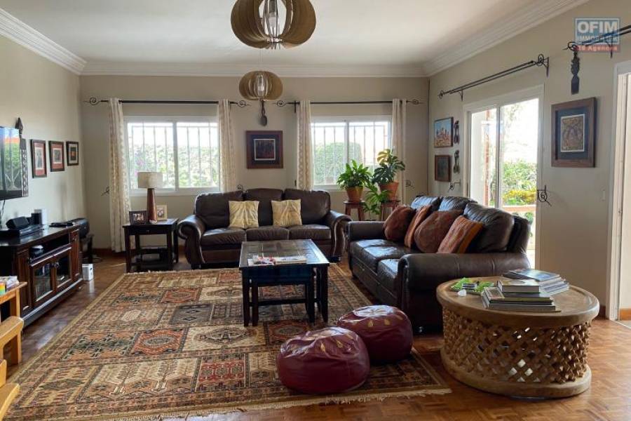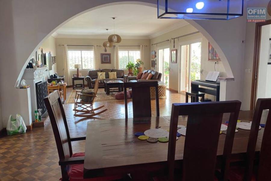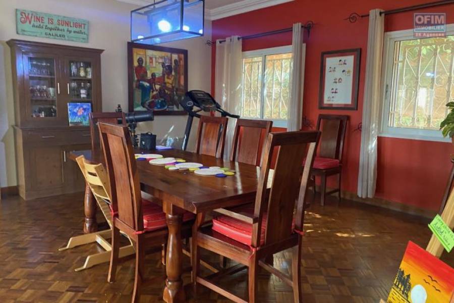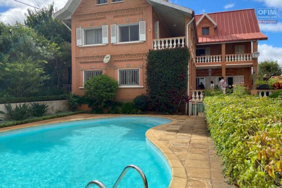 OFIM met en location une villa F6 à 5mn à pied du Lycée Français à Ambatobe Située dans un quartier calme et résidentiel, elle est composée d'un living avec cheminée donnant sue une terrasse, une cuisine placardée, une chambre avec salle d'eau attenante et placards au RDC A l'étage une chambre parentale avec salle de bain attenante et placards, 3 chambres, une salle d'eau commune, des balcons. Un jardin, une piscine, abri voiture, parking, réserve d'eau et surpresseur LOYER 2 300€ selon cours du jour Contact Lalaina 034 08 583 76 24A70637, Numéro de mandat: 3095T Tél. commercial: LALAINA 0340858376