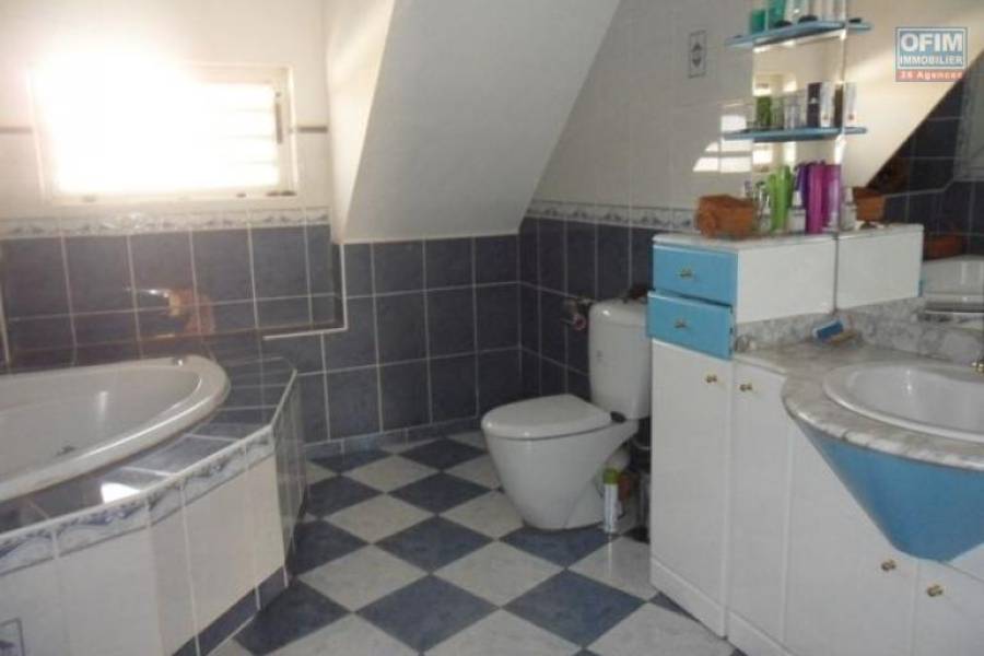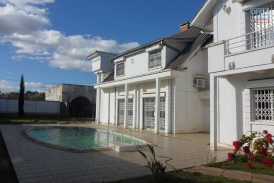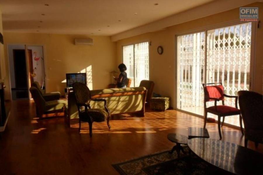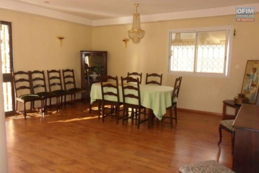 Cette grande villa sur un terrain de 1200m2 comprend au RDC un grand living et salle à manger avec climatiseur, une cuisine avec placards, 2 chambres, une salle d'eau. A l'étage, une grande suite parentale avec une salle de bain attenante, une terrasse, 2 chambres avec une salle de bain en commun. A l'extérieur, un garage, un grand jardin, dépendance personnel avec 3 chambres, une cuisine, salle d'eau. LOYER: 6 000 000 Ariary Contact Lalaina 034 08 583 76 24A69895, Numéro de mandat: 3119T Tél. commercial: LALAINA 0340858376