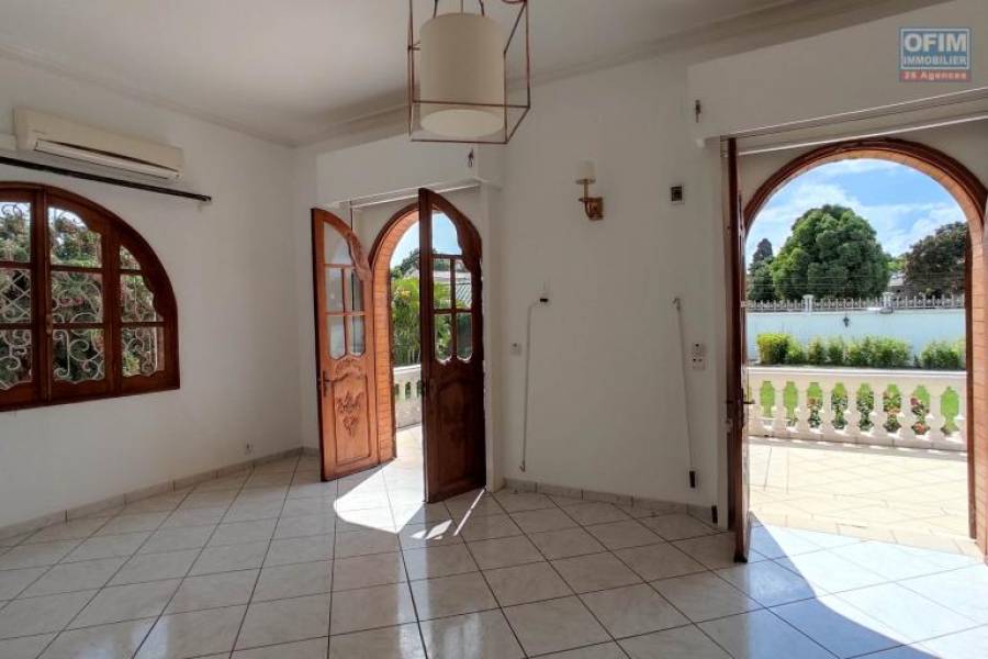 OFIM propose à la location une grande villa de type F8 située à Ambohibao. Idéalement placée dans un environnement calme, cette propriété se trouve à moins de 7 minutes de l'école française C et des commerces, et à moins de 10 minutes de l'aéroport ainsi que de l'ambassade des États-Unis. Sa localisation est parfaite pour ceux recherchant confort et praticité. La villa est agencée sur trois niveaux. Description : °Rez-de-chaussée : - Un spacieux séjour avec salle à manger, cheminée et grande terrasse. - Une chambre avec salle d’eau attenante et placards intégrés. - Une grande cuisine indépendante. °Étage : - Une suite parentale avec salle d’eau. - Quatre chambres supplémentaires. - Une salle d’eau commune. _ Un grand espace central pouvant être aménagé en salle de jeux, bureau ou pièce à vivre. °Sous-sol (R-1) : - Une salle de réception spacieuse avec toilettes. -Un garage fermé pouvant accueillir jusqu’à 6 véhicules. - Des espaces de rangement. - Deux dépendances avec sanitaires. ° Extérieur : Une grande cour aménagée. Un vaste jardin arboré avec arbres fruitiers et décoratifs. Une piscine. Une grande dépendance. Loyer : 3 500 € ou équivalent en Ariary. 28A70159, Numéro de mandat: 480T3 Tél. commercial: 0340221869