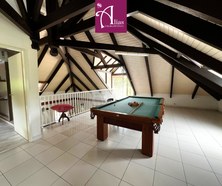 Grande mezzanine aménagée en coin détente avec billard